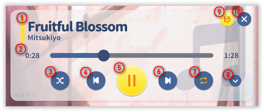 Playlist — show or hide the playlist (below).